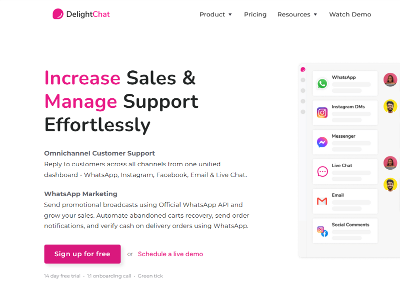 Delight Chat's WhatsApp Business API enables organizations to connect with their clients on WhatsApp utilizing highlights like mechanized messages and chatbots. With an easy-to-use interface and high level conversational man-made intelligence innovation, the stage expects to smooth out continuous correspondence and robotize client connections. In addition, it offers multi-lingual help and programmed layout interpretation for added accommodation.