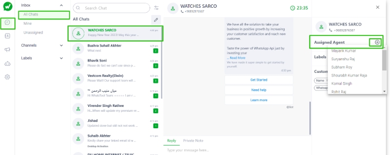 - Assign chat to an agent, simply go to the coversion section and open a chat which you want to assign to the agent.
