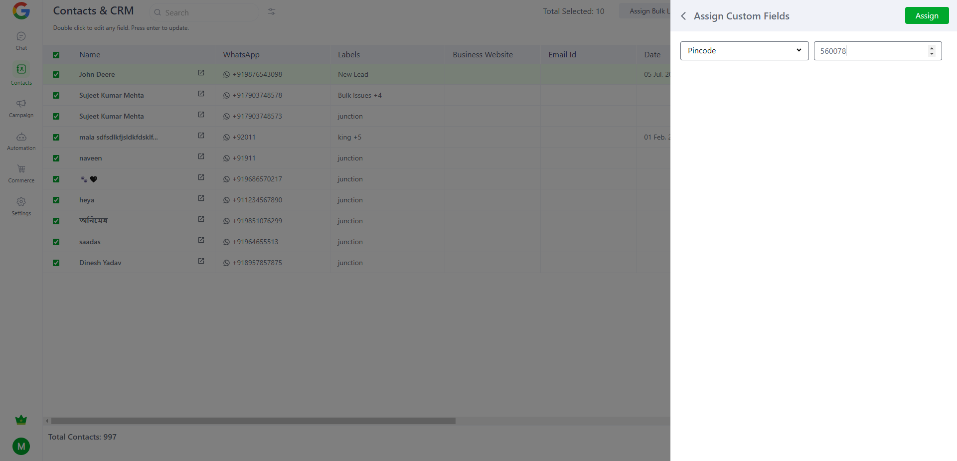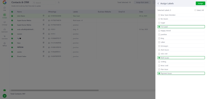 Bulk labels assign to contacts.